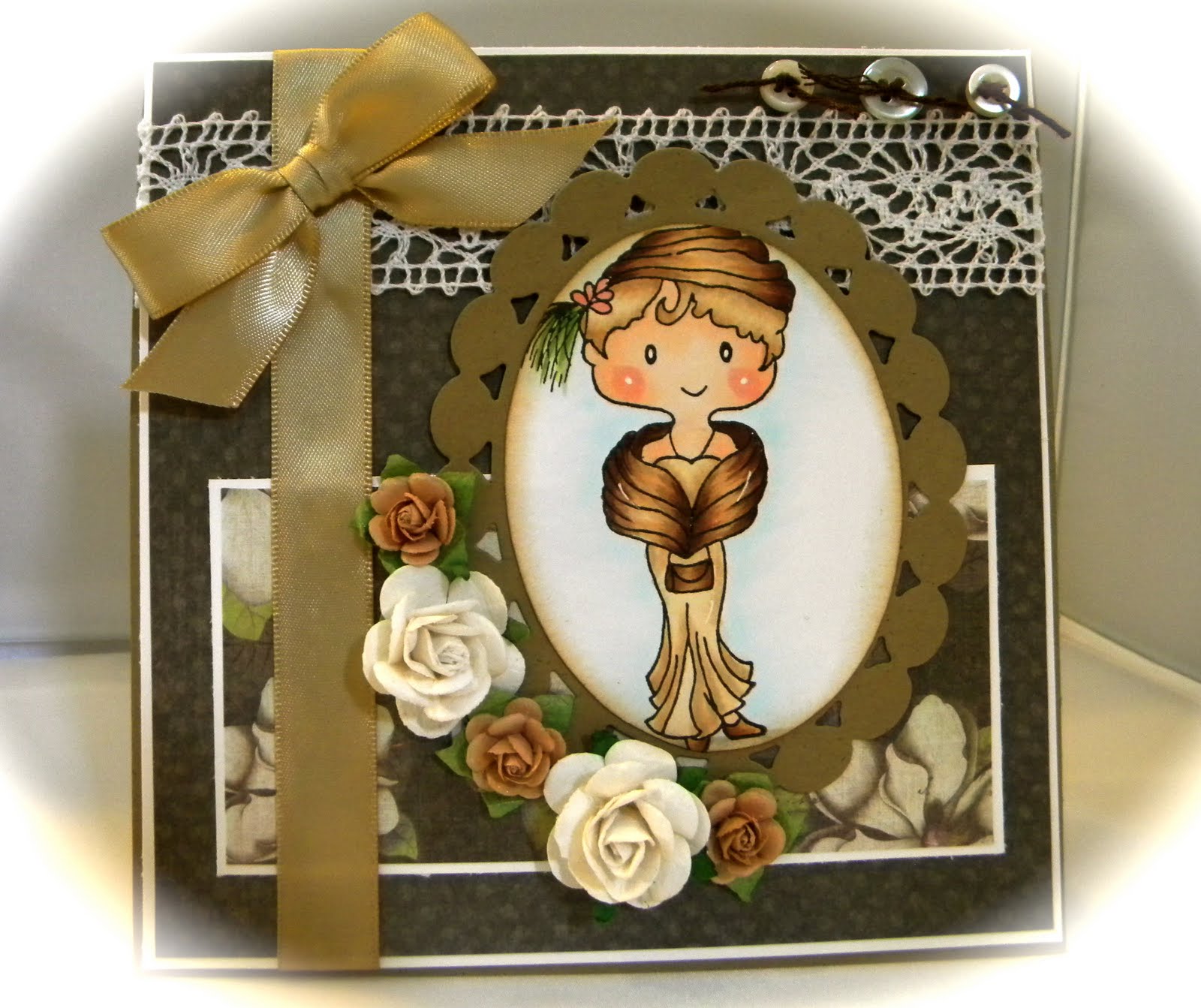I always like crafts. I tried crochet, embroidery, drawing, painting, but nothing gave me pleasure until I found card making. I love card making. I have been making cards for a few years, about 20! In the beginning I made cards using parchment, then quilling. Recently I discovered the blog world and with that numerous techniques for card making. Now a days I am loving coloring stamps and using them in combination with paper and scraping materials.